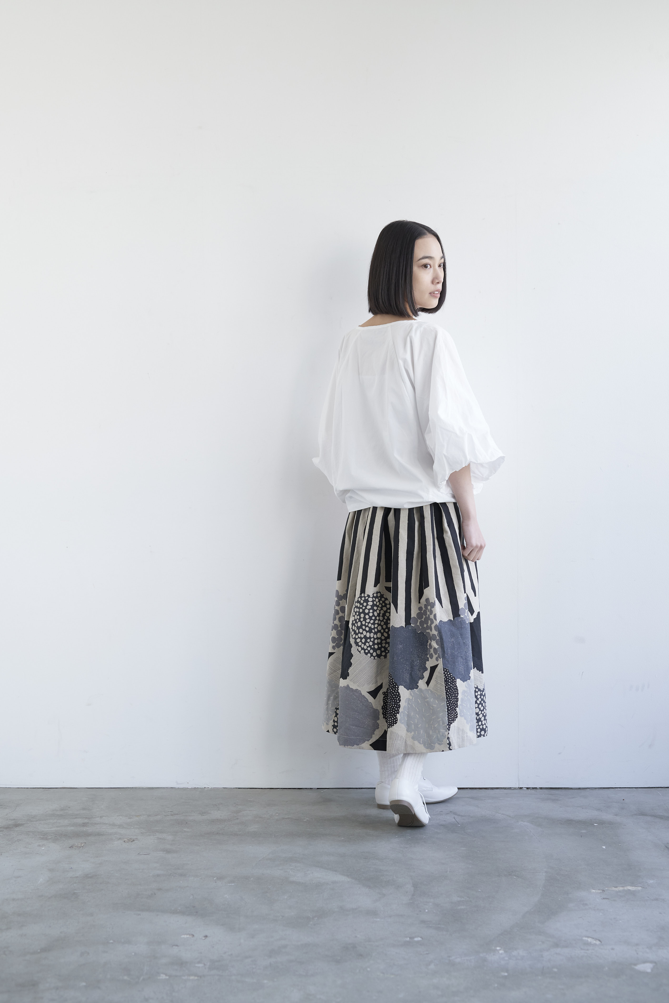手描きタッチのドット柄「circle」。シルバープリントの鳥や蝶や小さなカケラたちがチラチラとアクセントとなる、華やかで