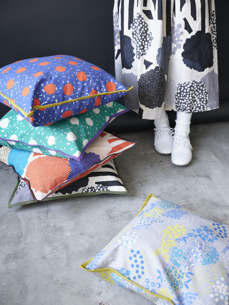 echinoらしい鮮やかなカラーや、配色やトリミングによって印象がガラっと変わり、様々なシーンや空間で個性的に存在する