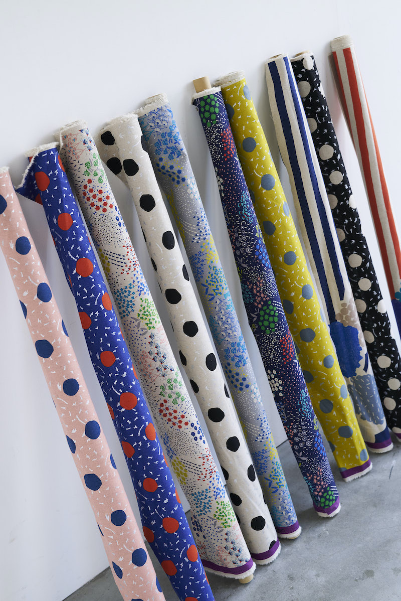 遊び心のあるテキスタイル。echinoらしさがプラスされたドット柄でシンプルなモノたちも愛着のわくモノに。。