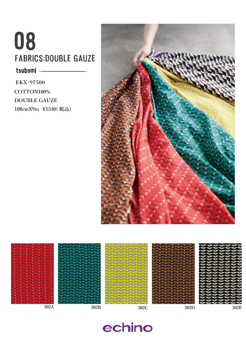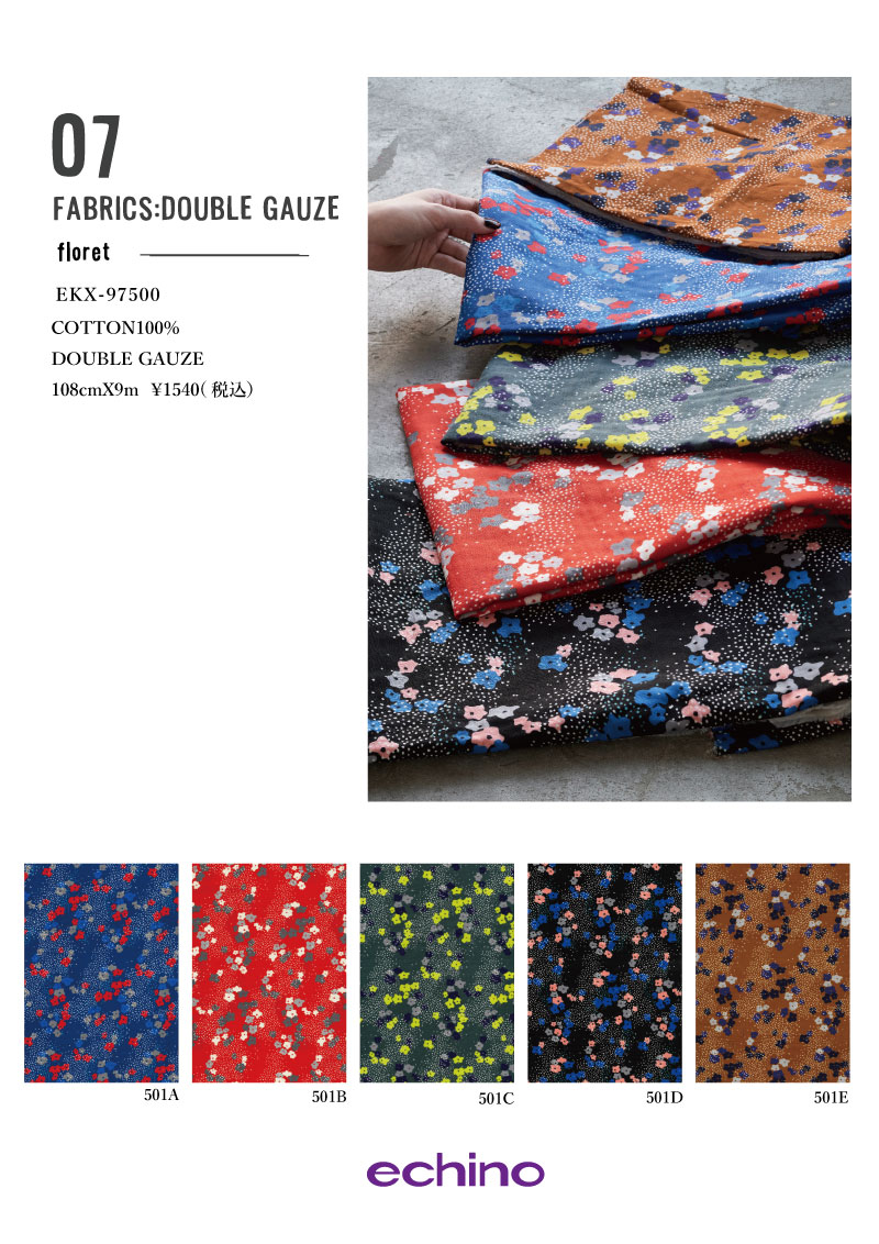 echinoらしい色目と柄を柔らかなダブルガーゼで