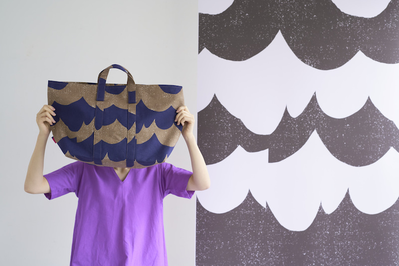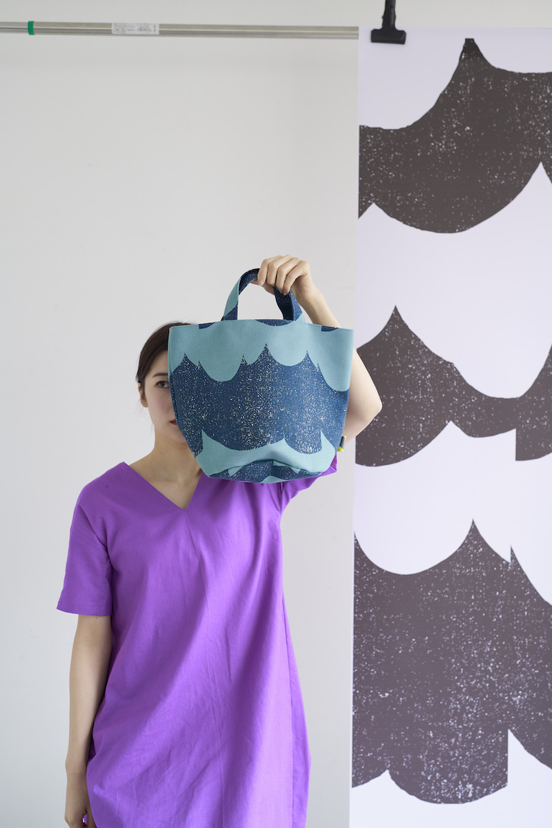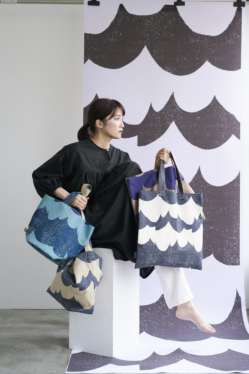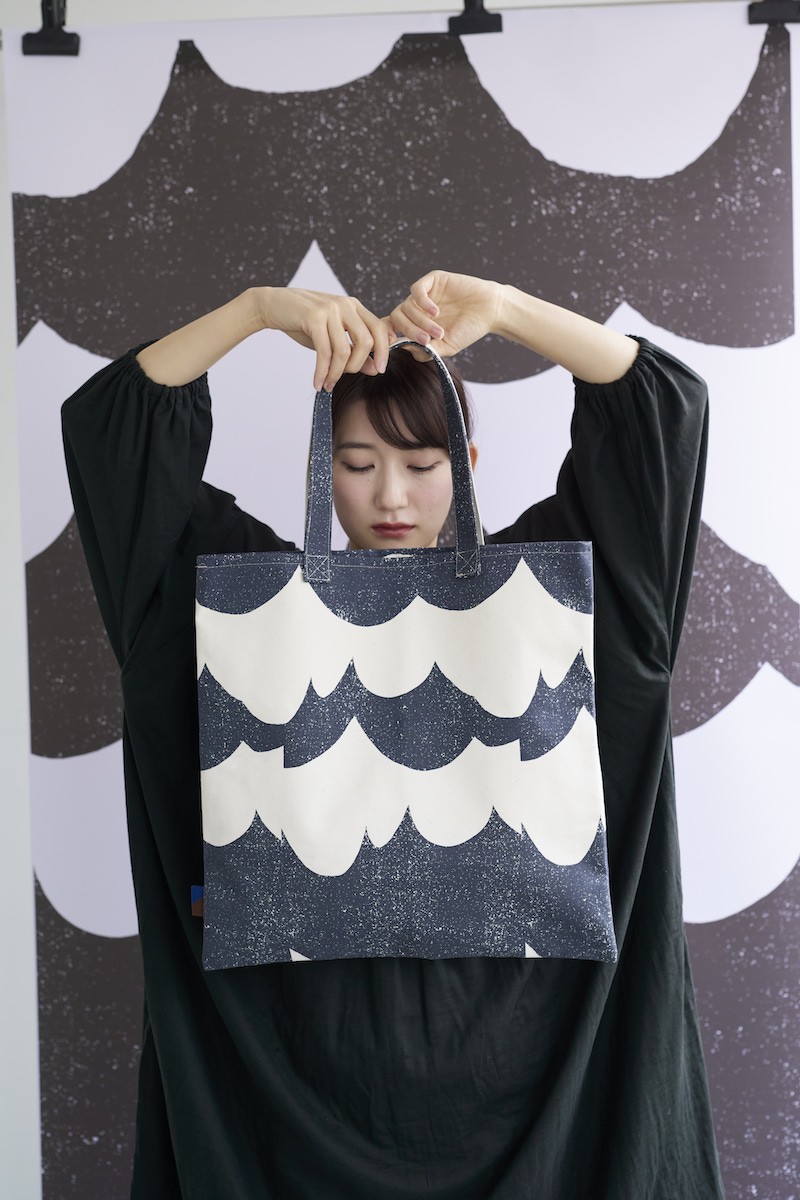 大きくユラユラゆらぐ柄「wave」。手描きのタッチを残し、帆布の特徴である生地感や厚みを活かしたシンプルなデザインです。