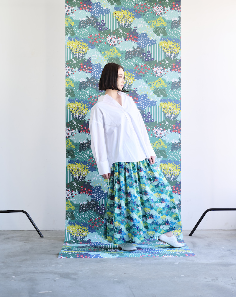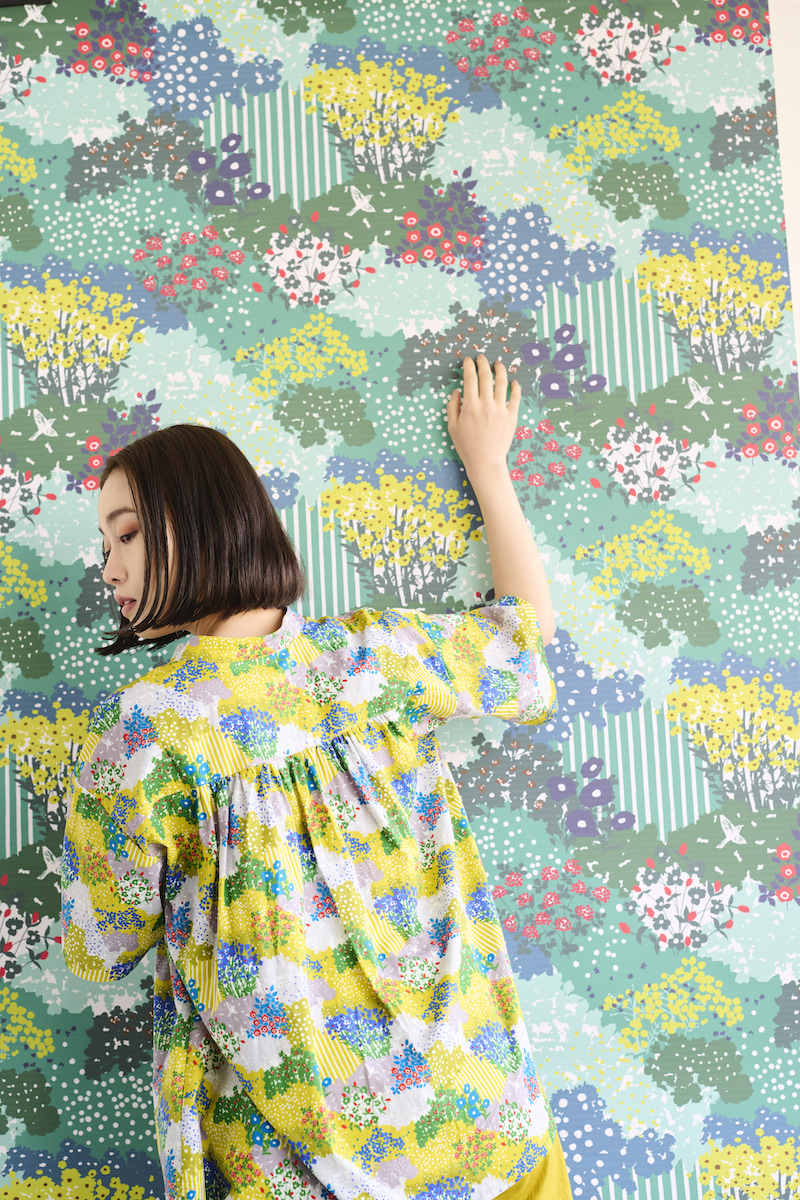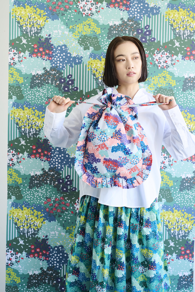 花の庭園が広がる華やかな配色も魅力、生地の素材感も新たな「garden」柄もぜひ楽しんで欲しいです。。