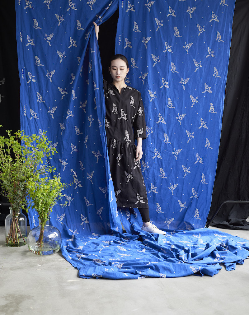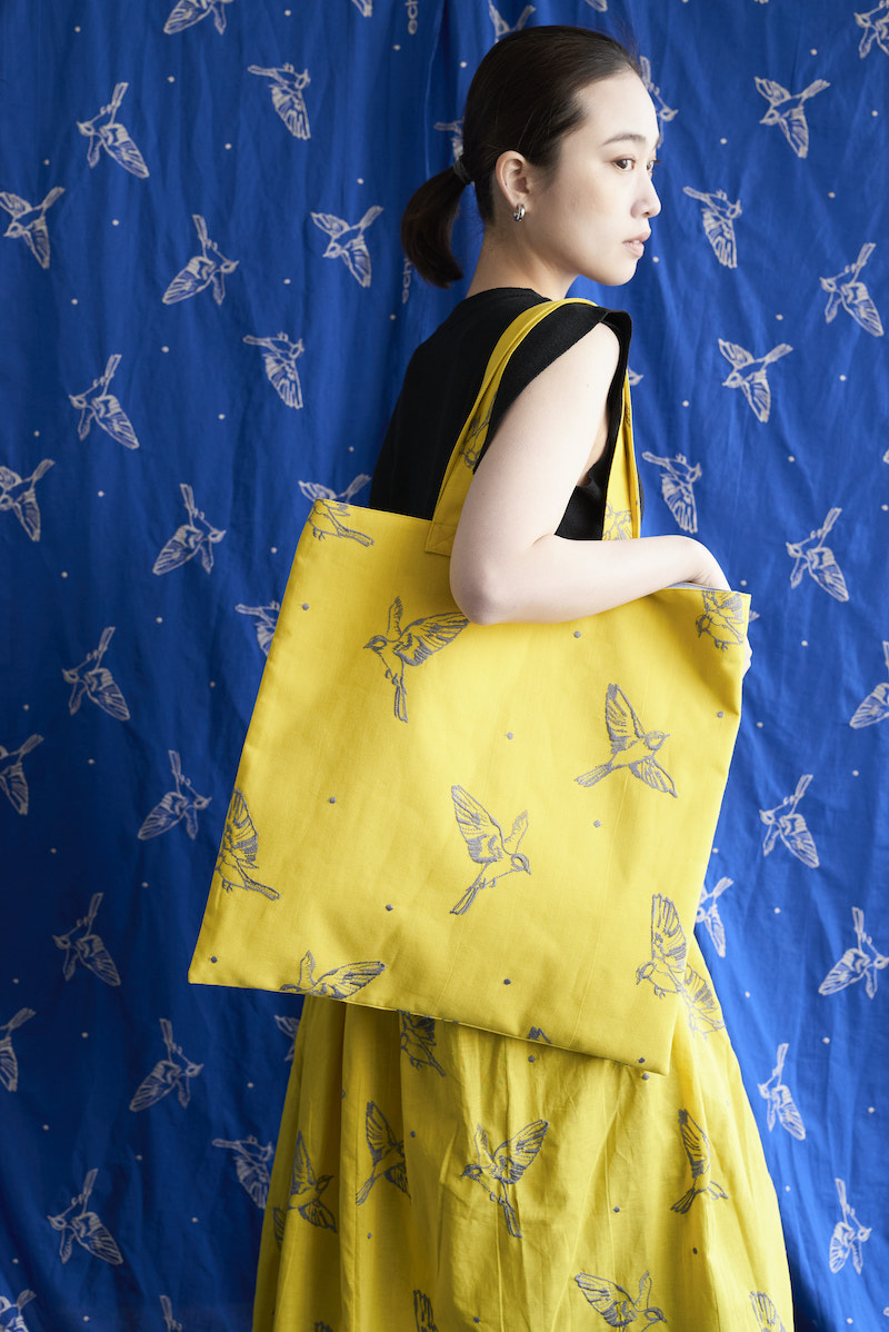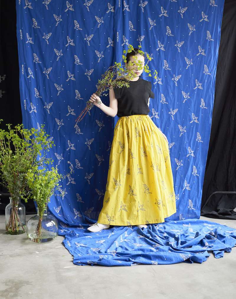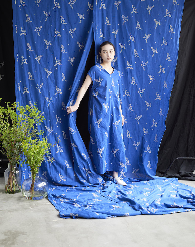 多くの柄にも登場するechinoの鳥たち。存在感のある羽ばたく鳥たちが刺繍となって素敵なテキスタイルが出来上がりました。