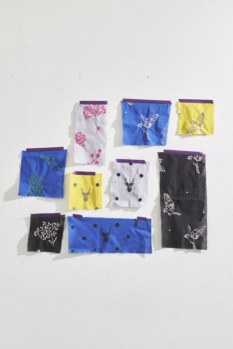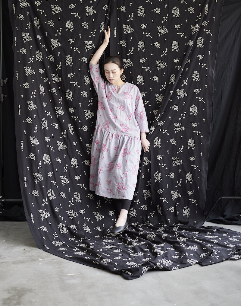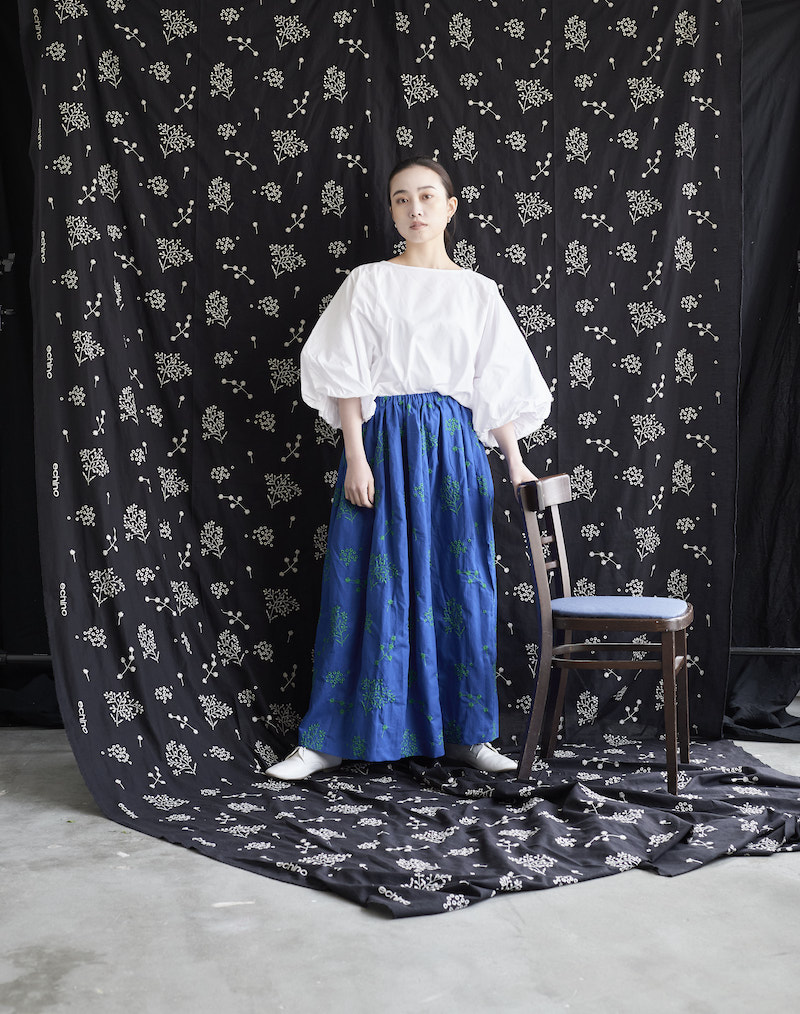 何度も試作を繰り返し時間をかけて仕上がったテキスタイルは刺繍独特のクラフト感や特別感が感じられます。
