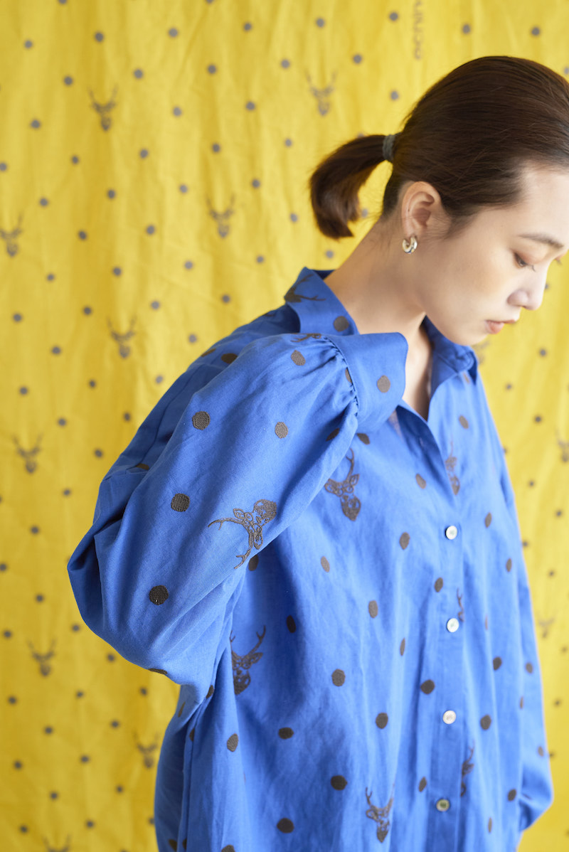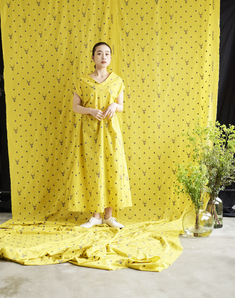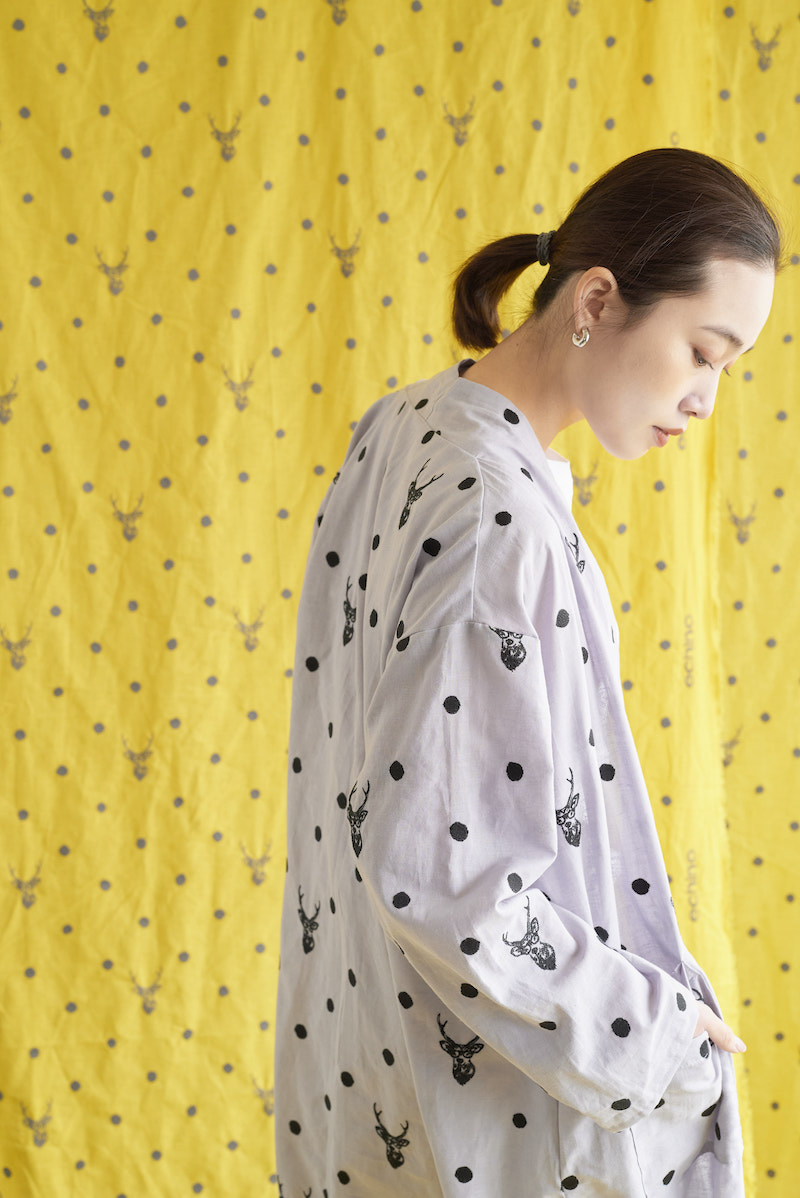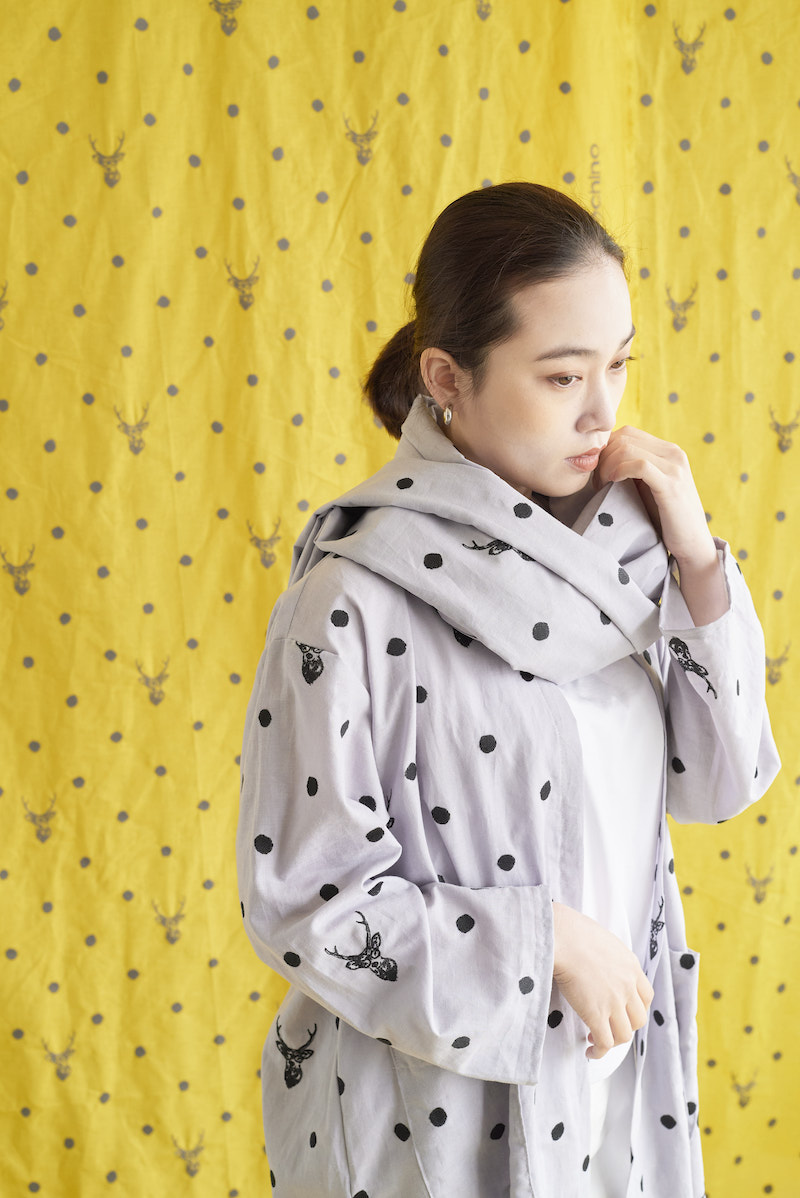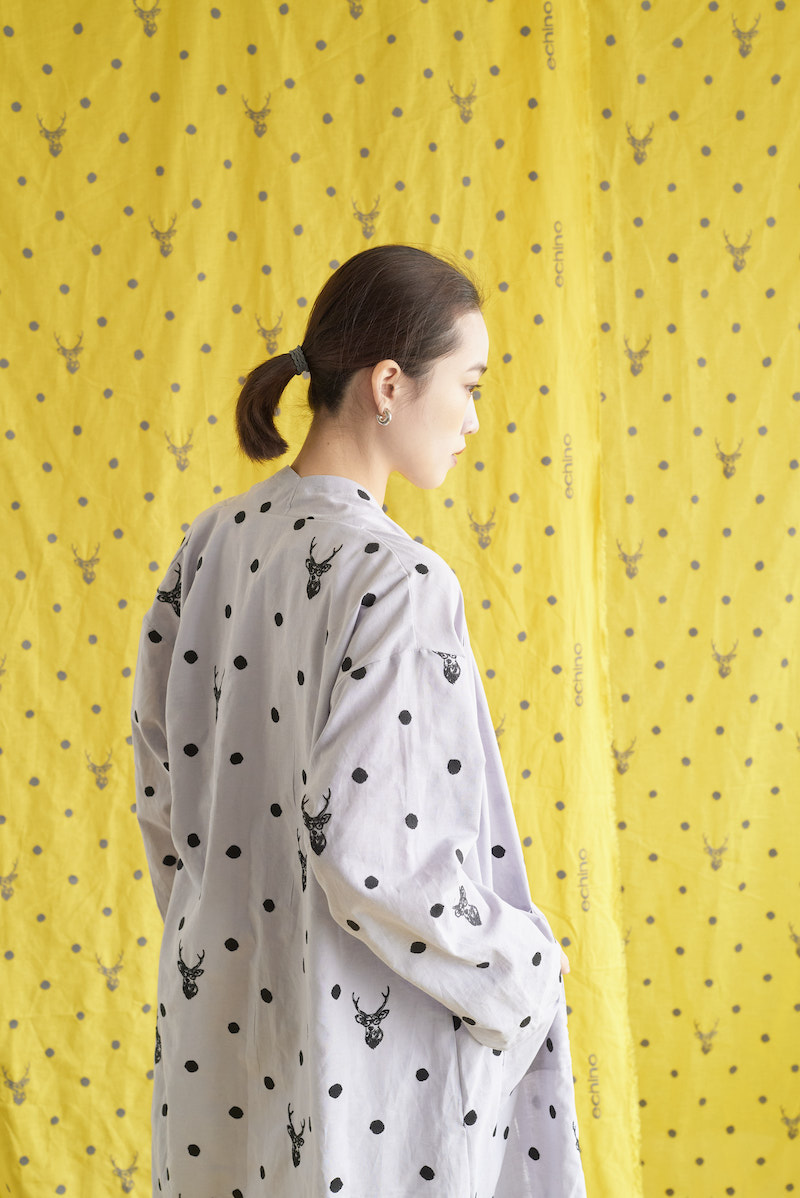 アイコンの“鹿”の表情もやはり刺繍になっても個性的で可愛く、柔らかな雰囲気も魅力となっています。シンプルなドットにechinoの鹿が特徴の