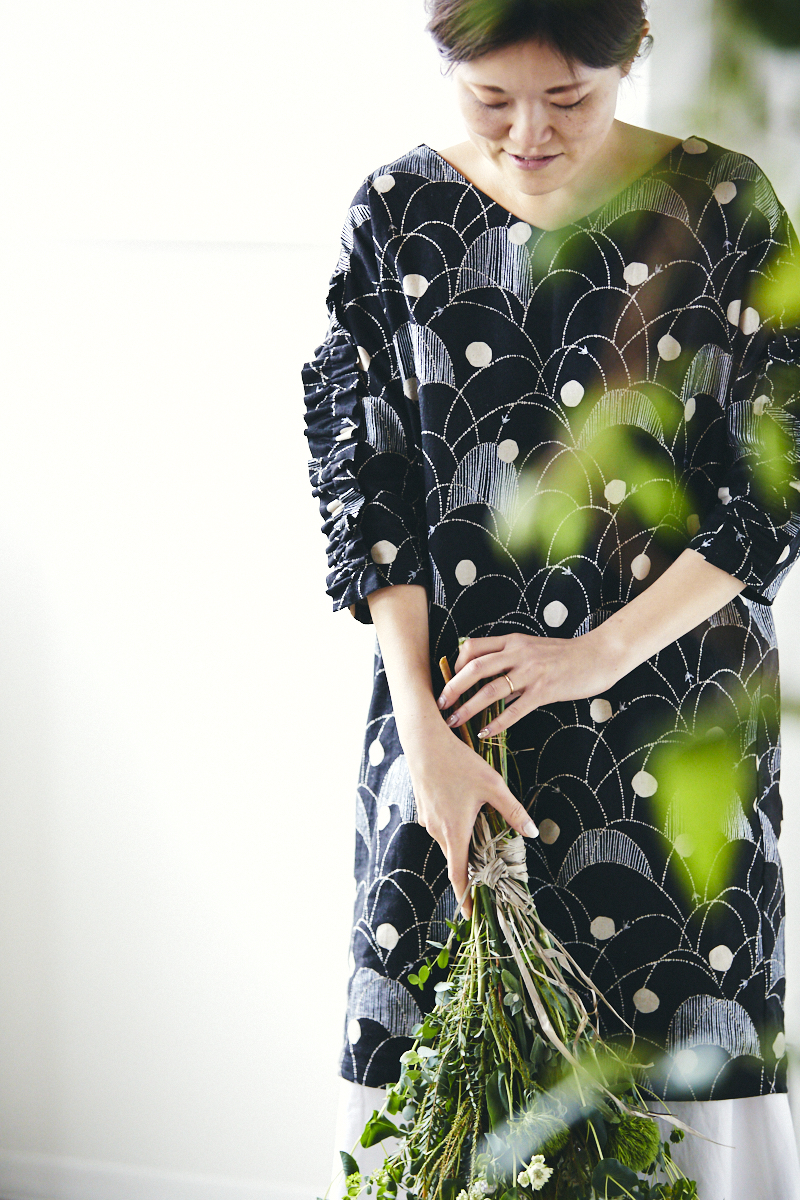 花や植物たちが青々と茂っていくようなイメージで描いた柄
