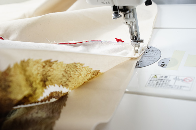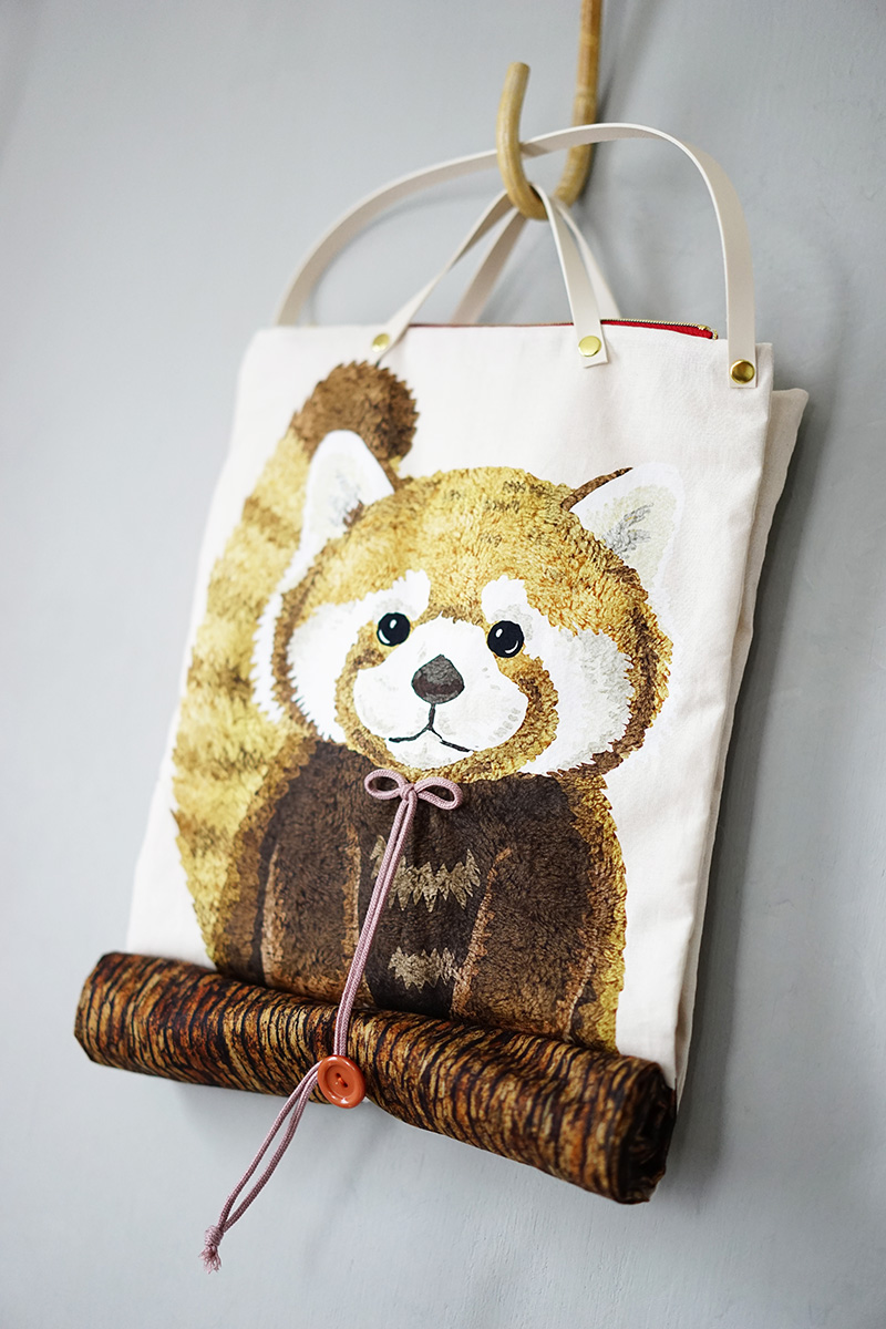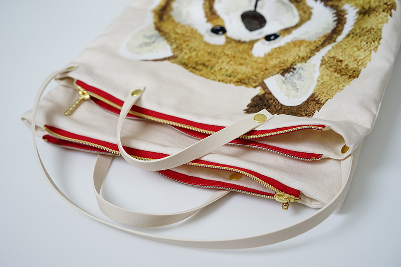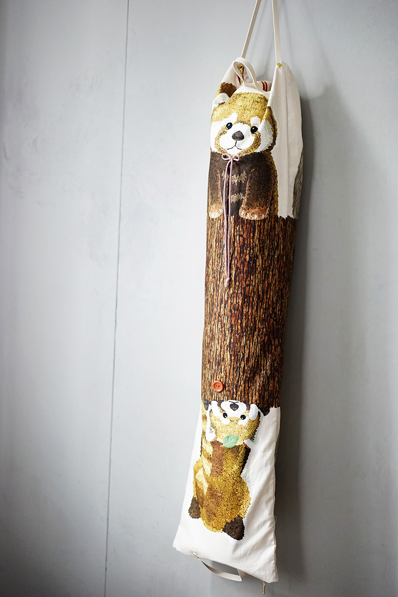 This bag can be used in two ways: as a convenient tote bag, or as a long bag for storing vertical items. The fabric used for this bag is from the “HOME DECO” series, which was created with the concept, “decorating rooms more fun.” The panel features popular animals such as the Pallas cat, white tiger, red panda and capybara. The cute animals peeking out from the trees are full of loveliness. In addition, there are small baby animals hidden behind! As the motifs are printed both on the front and back, you can enjoy making bags and small items with designs all around. It is an easy-to-sew 100% cotton sheeting, a perfect material for making bags and accessories.