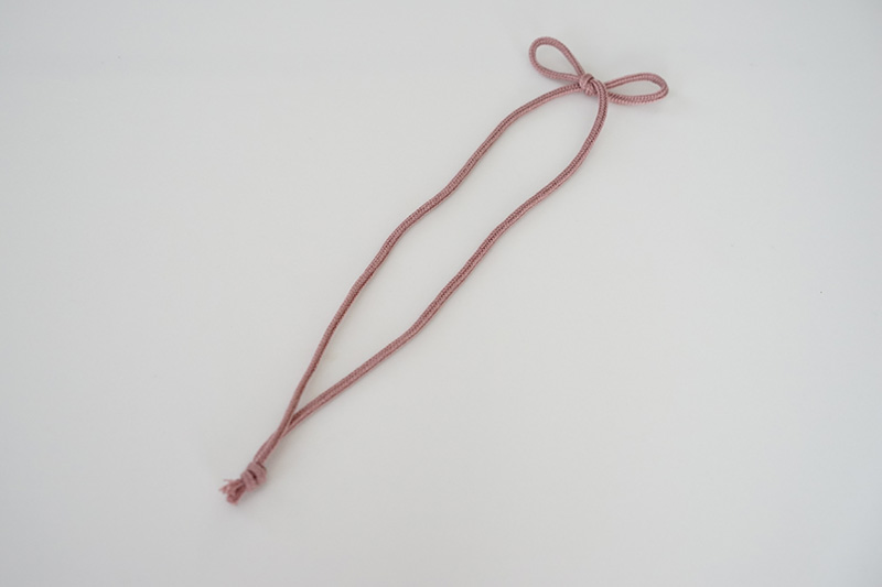Prepare a 65cm cord. Tie a bow in the center. Make an end knot.