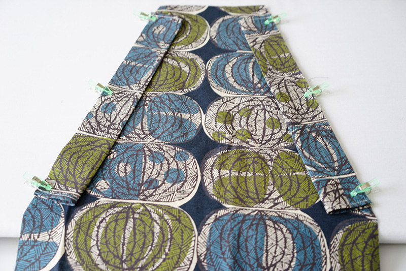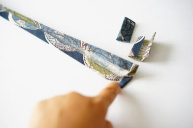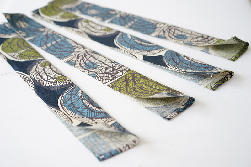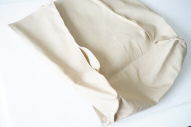 Sew the cord opening. Fold the short ends in three and apply stitches. With the front sides facing outside, fold in half lengthwise.