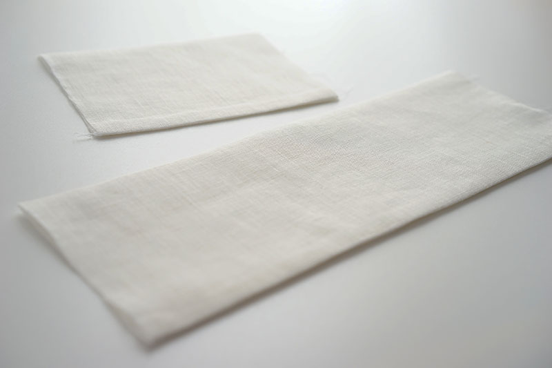 Make two pieces of pocket fabric. With the front sides facing each other, fold in half. With the loop facing up, sew the bottom end.