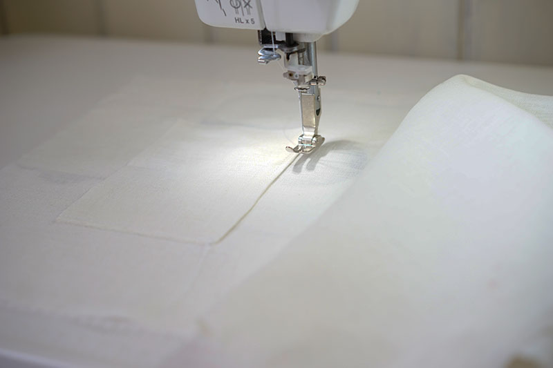 To cut along the grain of the fabric, it is recommended to pull out a piece of thread first. If you are able to cut it straight, it will be easier to sew and less likely to lose its shape.