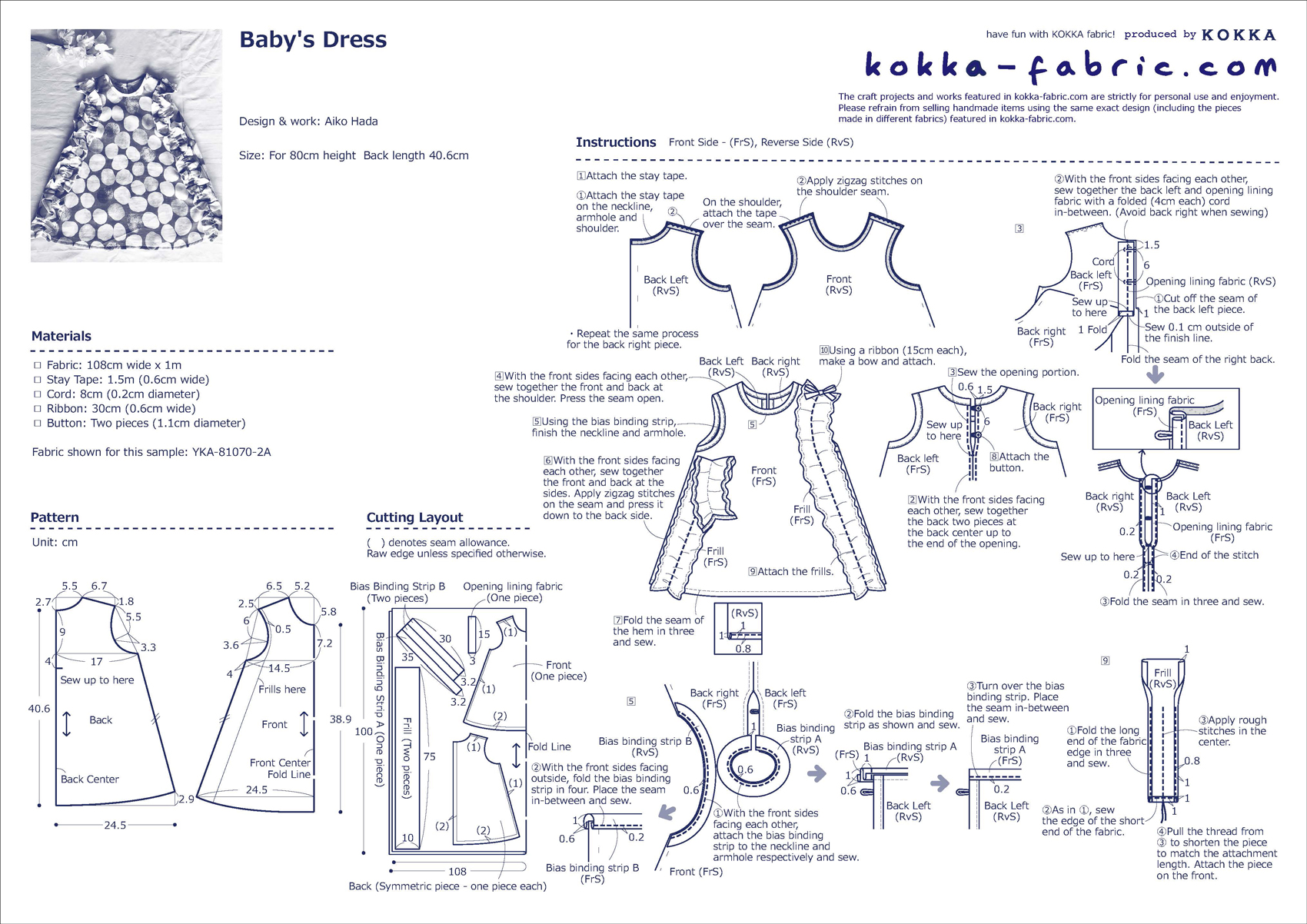 80cm Size with Lovely Frills! – Baby’s Dress – Sewing Instructions