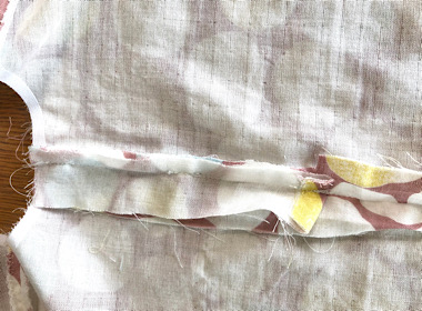Since it is a soft fabric, the bias tape is used around the neck and armpits to prevent the fabric from being damaged by friction, and the back centerline was folded in three to prevent the fabric edge from showing.