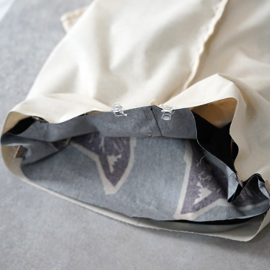 Turn it inside out. Insert the lining fabric into the outer fabric and align the shape.