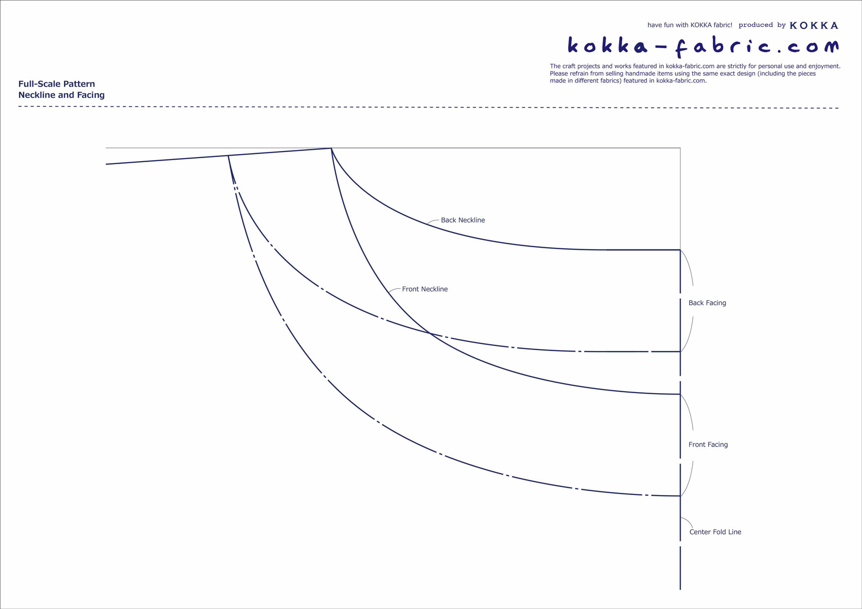 Using the “Pattern” in the instructions as a reference, trace along the printed pattern for the front neckline and back neckline respectively.