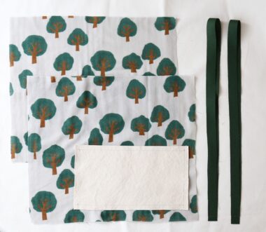 The featured project is a box tissue case with a refreshing green tree design. The part that touches your hands is made of double gauze, while the bottom is finished with a solid canvas. The fabric used is “Kigi (Trees)” from Muddy Works, a textile brand by Tomotake.