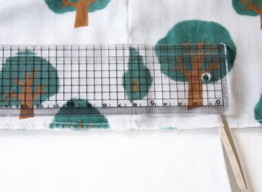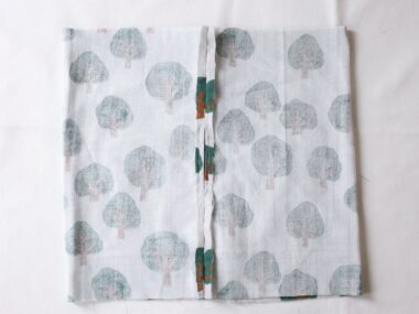 It is a lovely and soft double gauze featuring trees with an idyllic feel. It is both comfortable to see and touch. As we spend more time at home these days, I made a small home décor item with this comfy fabric.