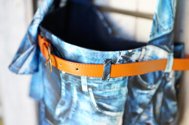 I used a belt from a dollar shop this time. You can replace it with the one you already have depending on your mood. You may also use a ribbon or a scarf for a different look. This bag can be a stylish accompaniment for a simple outfit.