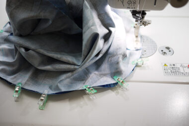 When piecing together the round bottom, you may find it slightly difficult. The tip to finish it nicely is to use multiple sewing clips for holding fabrics together or basting beforehand.