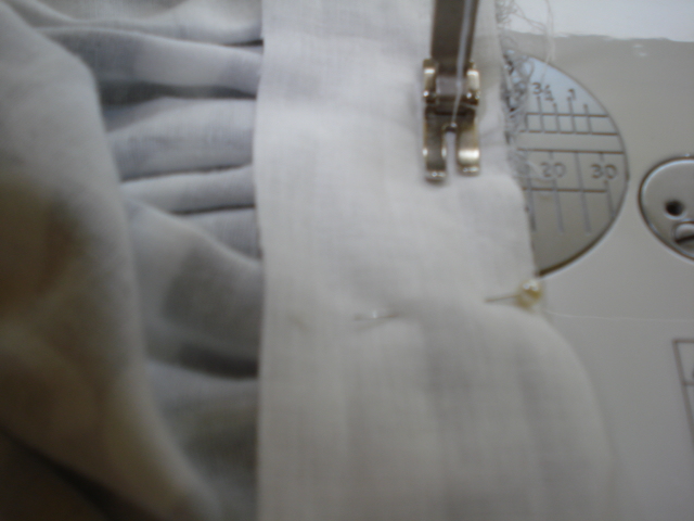 Run rough stitches at 0.5cm and 0.7cm from the edge to create a gathering. Try to make the gathering even on the front body. For the back body, try to have more gathering in the center.