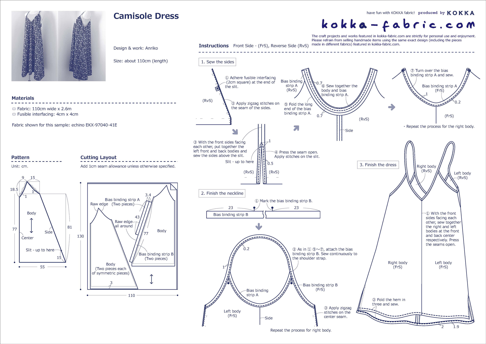 KF: Thank you very much, Anriko! Here are sewing instructions along with step by step photos from her. Enjoy crafting!