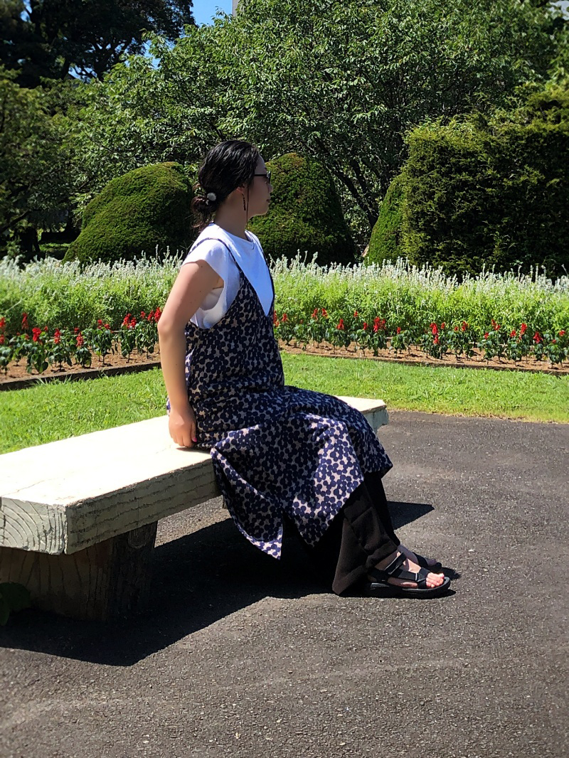 Cotton linen sheeting can be enjoyed in every season. Depending on the items you choose, it can be enjoyed throughout the year. The long shoulder strap and collar and armhole with a wide opening make it easy for you to choose the inner layers.