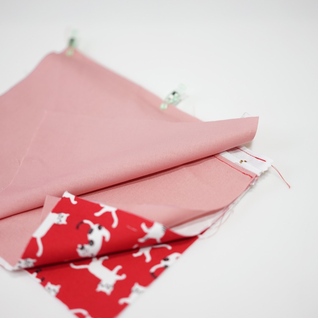 Spread open the fabric, align the stitch lines neatly and fold. Sew both sides with 1cm seam allowance.