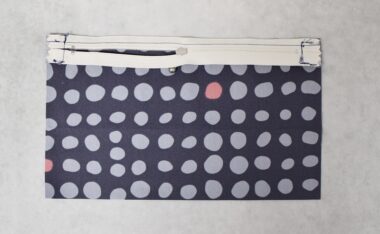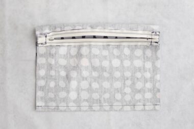 Fold the tab for zipper ends in four. Apply stitches on the right and left edge and attach it to the right and left side of the zipper.