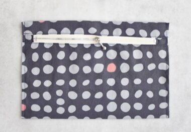 Make a trolly sleeve. Fold the zipper end fabric by 1cm and attached it on both right and left side of the zipper as shown.