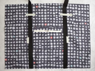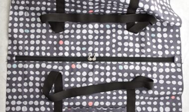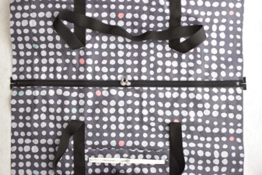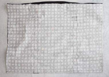 With the front sides facing each other, fold the fabric and sew at the bottom. Apply zigzag stitches on the seam. Press down the seam to one side and apply stitches from the front.
