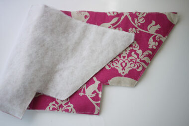 Layer the quilt batting over the outer fabric. Baste the edge all the way around (you could use fusible quilt batting instead).