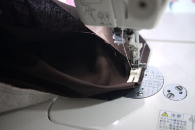 The process is easy with a simple straight stitching! The leather tape for strap loop can be attached any place you like, but it is best not to layer it with the top opening seam to keep it from being bulky.