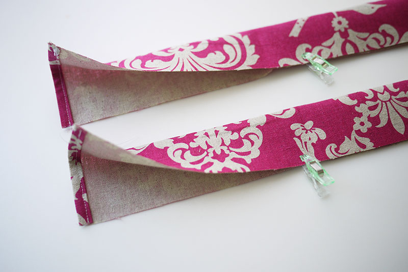 Make the opening piece. Fold the seam of the short end in three and sew. With the front sides facing outside, fold the piece in half.