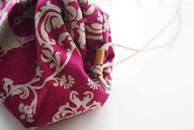 You immediately notice it’s an echino fabric. Its vivid pattern and color tones are so attractive! I thought a little purse in this fabric will go perfectly well with an autumn style!