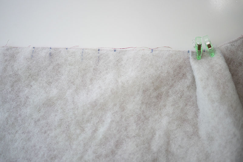 Layer the quilt batting over the outer fabric. Baste the edge all the way around (you could use fusible quilt batting instead).