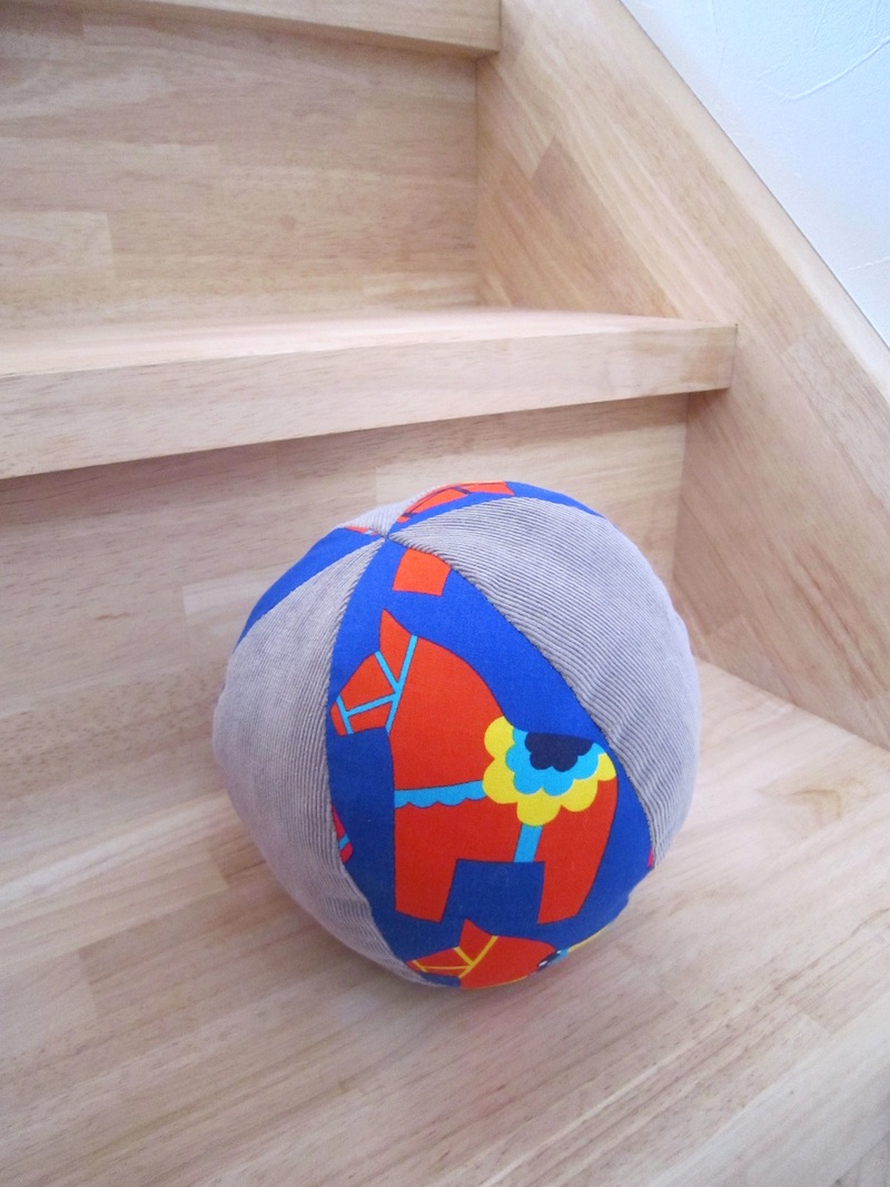 Today’s project is a playful toy ball, using the design of a Swedish traditional craft, the Dalarna Horse as a main motif. Anri, who previously introduced stylish items like the lampshade using the echino series of fabric and leather combination card holder on this site, has returned to share her new creation.