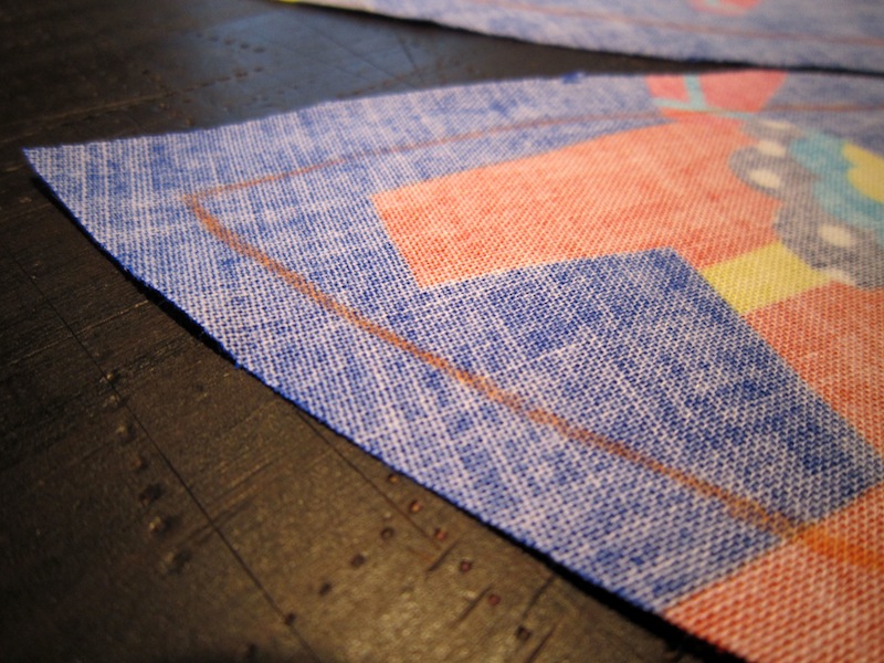 When I picked up and felt this fabric, the first image that came to my mind was a toy. A large print can be cute even in small pieces. I decided to cut a small part to use as an accent color piece.