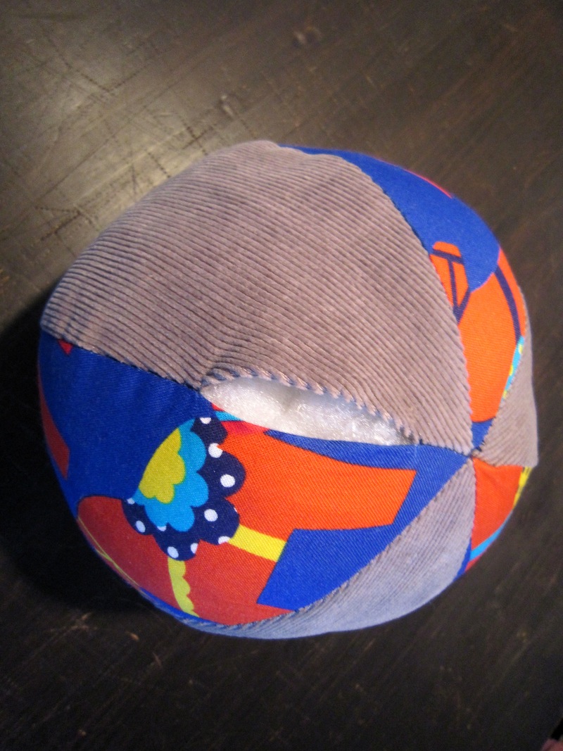 Depending on how much stuffing you put in the ball, you can use it for many different purposes. For a kid’s or dog’s toy, it should be stuffed full and tight. A lightly stuffed ball can be used as a casual pillow or an armrest cushion. The size can be as small or as big as you like.