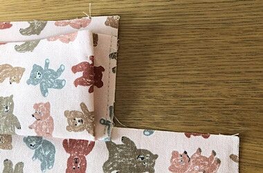 This shows how the flap for the pocket is sewn. Make a notch in the corner and turn it over for a clean finish.