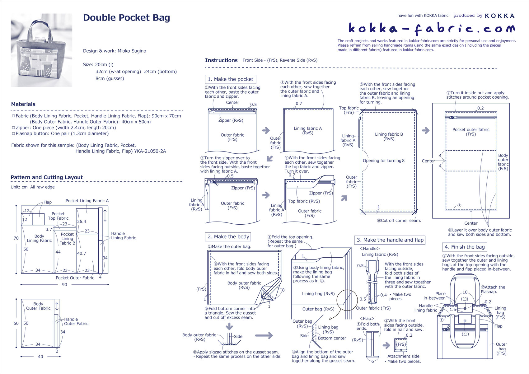 Fabric shown for this sample: (Body Lining Fabric, Pocket, Handle Lining Fabric, Flap)YKA-21050-2A
