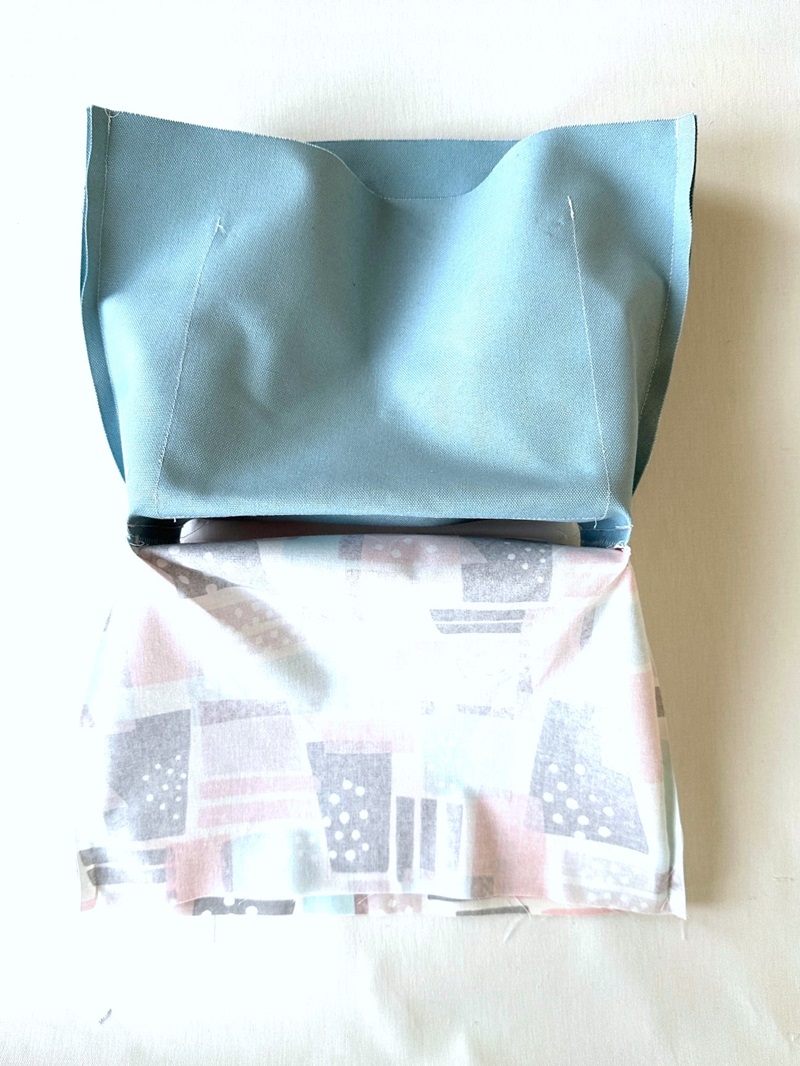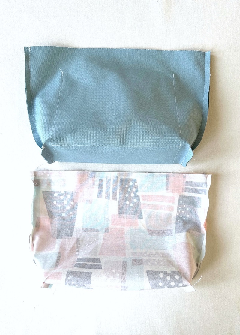 Sew together the bottom of the outer bag and lining bag, and turn it inside out.