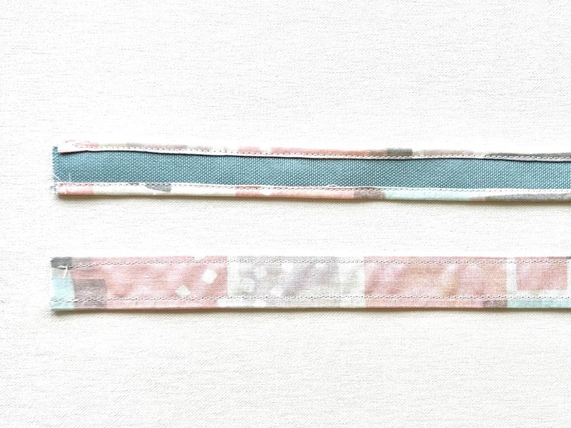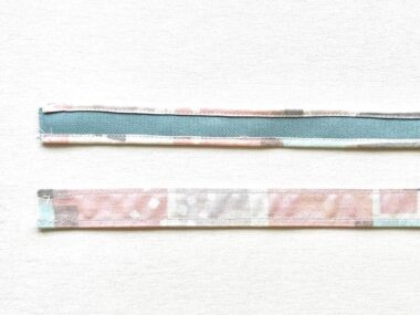 Place the handle outer fabric over the reverse side of the handle lining fabric. Fold both top and bottom ends in three at 5mm and sew.