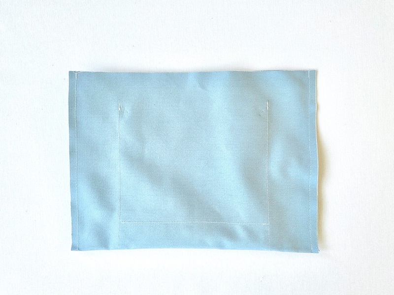 Place the pocket over the marking. Sew both vertical sides and bottom.
