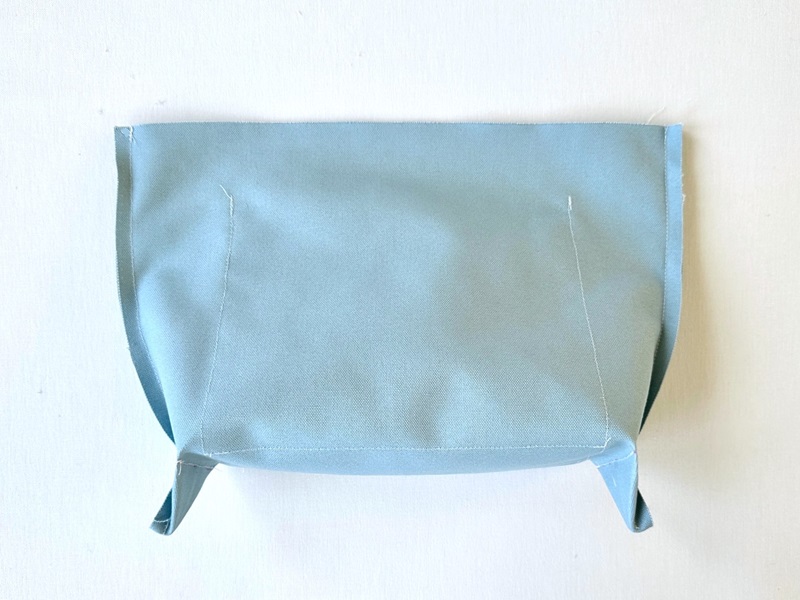 Cut off the corner seam and turn it inside out. Sew the top and bottom ends (which becomes the pocket opening).