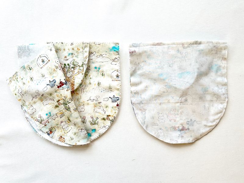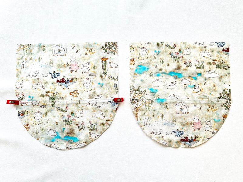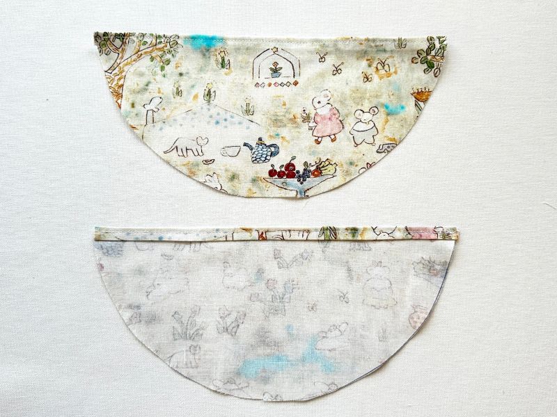 Layer the pocket fabric over the front side of the lining fabric. Sew along the curve to secure.