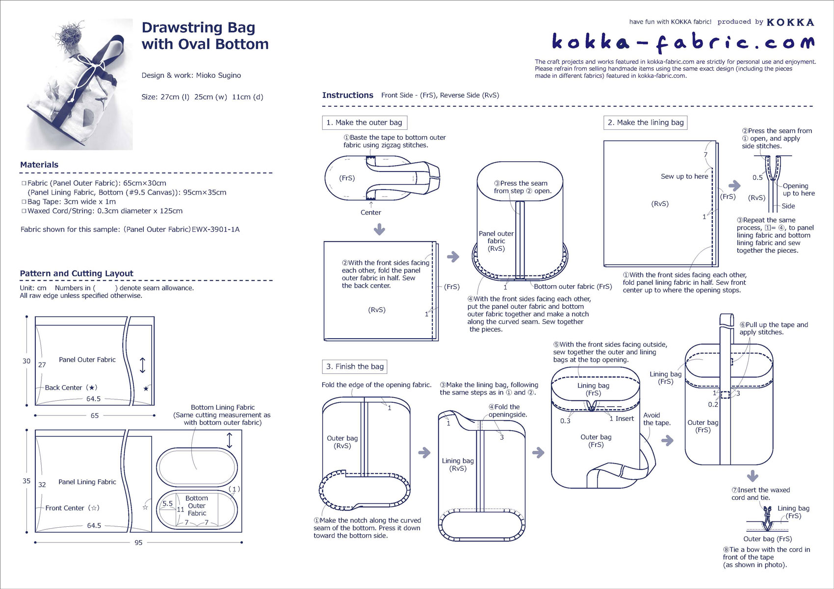 Structured Design Nicely Displays The Printed Pattern♪ – Oval Bottom Drawstring Bag – Sewing Instructions
