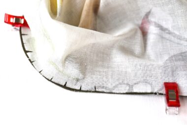 Sew the vertical ends of the lining fabric, leaving 7cm unsewn from the top.