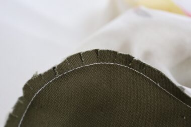 Cut a slit along the curve of the bottom outer fabric and bottom lining fabric. Fold the seam of the bottom toward inner side.