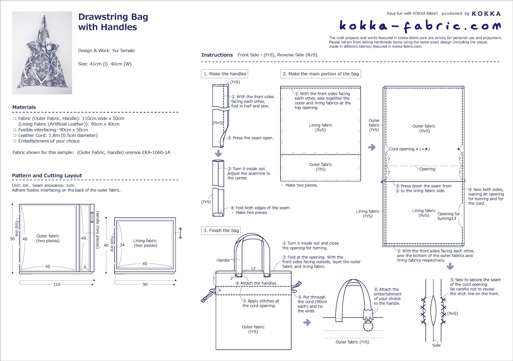 □ Fabric (Outer Fabric, Handle): 110cm wide x 50cm