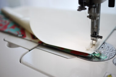 The opening for the cord requires a long straight stitching. You could use an erasable pen to mark the stitch line. If not, you could place a piece of masking tape on the sewing machine to mark where the edge of the fabric should be. These methods will help to stitch a straight line.